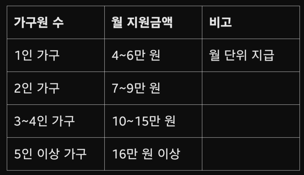✅ 가구원 수별 예상 지원 금액 (2024년 기준 참고)