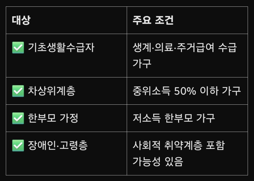 ✅ 지원 대상 (2025년 기준 예상)